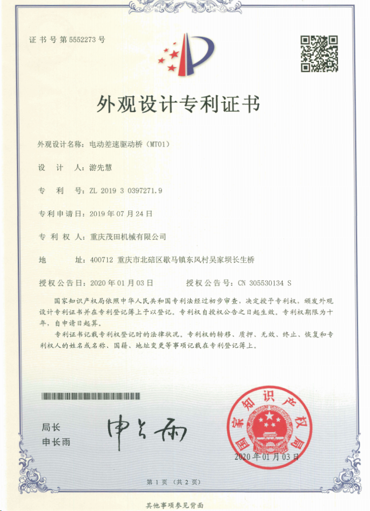 重慶茂田機械有限公司是國家級小巨人企業(yè)、國家高新技術(shù)企業(yè)、重慶市專精特新企業(yè)、重慶市知識產(chǎn)權(quán)優(yōu)勢企業(yè),致力于現(xiàn)代化山地農(nóng)業(yè)機械、各類非標減速電機及其控制系統(tǒng)的研發(fā)、生產(chǎn)、銷售。擁有重慶市市級研發(fā)平臺1個 目前研發(fā)、生產(chǎn)、銷售產(chǎn)品廣泛應(yīng)用于農(nóng)業(yè)機械、醫(yī)療康復設(shè)備、交通代步工具、智能搬運設(shè)備、以及機器人動力系統(tǒng)等領(lǐng)域。我們的產(chǎn)品具有完整的自主知識產(chǎn)權(quán),擁有多項專利技術(shù)及“重慶